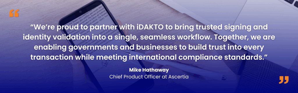 “We’re proud to partner with iDAKTO to bring trusted signing and identity validation into a single, seamless workflow,” said Mike Hathaway, Ascertia’s Chief Product Officer. “Together, we are enabling governments and businesses to build trust into every transaction while meeting international compliance standards.”