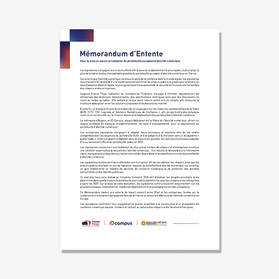 Under this memorandum, the signatory companies notably commit to adapting their processes and solutions to make them compatible with the requirements of the EUDI Wallet, and to prepare for the transition to a ‘wallet-ready’ ecosystem, in anticipation of the planned launch in 2027.